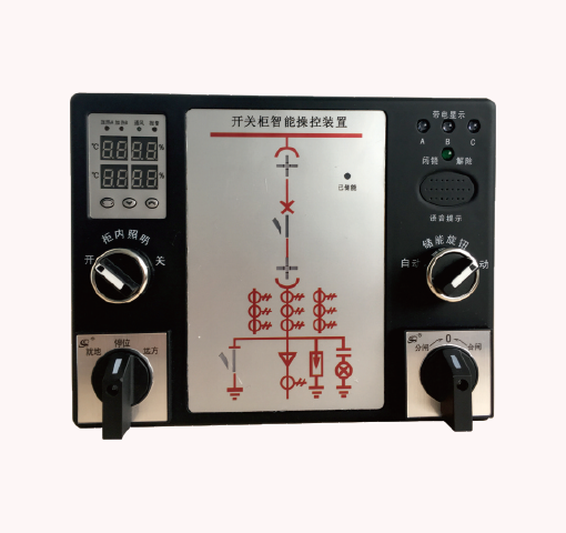 GH-9008A開關櫃智能操控裝置主要用于3~35KV的中壓系統開關櫃,具有一次回路動态模拟圖、兩路溫濕度數字顯示及控制、帶電顯示及閉鎖、語音提示、RS485、櫃内照明、儲能、分合閘、遠方就地于一體。